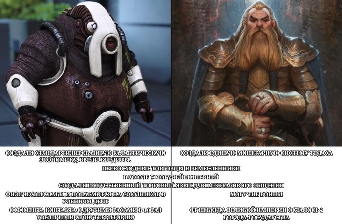 Когда началась гражданская война эльфийская элита Тевинтера решила, что вытащила золотой билет. Еще до Завесы они процветали, получая подряды на строительные и прочие работы по всему Элвенану. Конкуренты в ходе боевых действий теряли мобилизационный и трудовой ресурсы. Благодаря высокой рождаемости у людей Тевинтеру хватало рабочих рук. В связи с потерями пришлось кое-чему учить шемленов, чтобы они смогли заменить погибших эльфов. И главное — дать в руки рабам оружие и научить им пользоваться. Тем самым эльфы подписали себе смертный приговор.