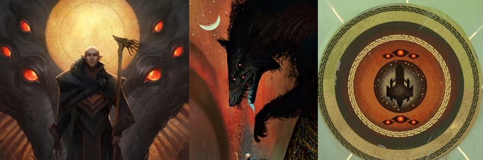 Солас и Митал не являются положительными персонажами. В рабовладельческой теократической империи, погрязшей во внутренних и внешних конфликтах, хорошие люди у вершин власти никогда не окажутся. Лысый очень недоволен инквизитором решившим испить из источника Скорби и стать рабом Митал. В конце «Чужака» он говорит, что история о героическом борце с рабством и эванурисами - еще один миф. Он ближе к правде, чем легенды долийцев о злобном боге-обманщике Фен’Хареле, но в нем его незаслуженно возвышают и приукрашивают. Это легенда созданная в очень плохие времена. Фелассан описывал своего начальника вовсе не радужно и пожелал Бриале никогда с ним не встречаться. Солас не раз отправлял множество последователей на убой в безнадежных битвах. У него был свой сомнаборий с содержимым сердца титана. Очевидно, он сам был эванурисом какое-то время. Митал ужасная мать и во многих легендах предстает очень жестокой богиней. Основной смысл существования Флемет — месть эванурисам. По ее собственным словам. Если часть эванурисов ее дети как в мифах, то это многое объясняет. В конце DAI планировалось противостояние Митал и Соласа, но его решили отложить на будущие игры.
