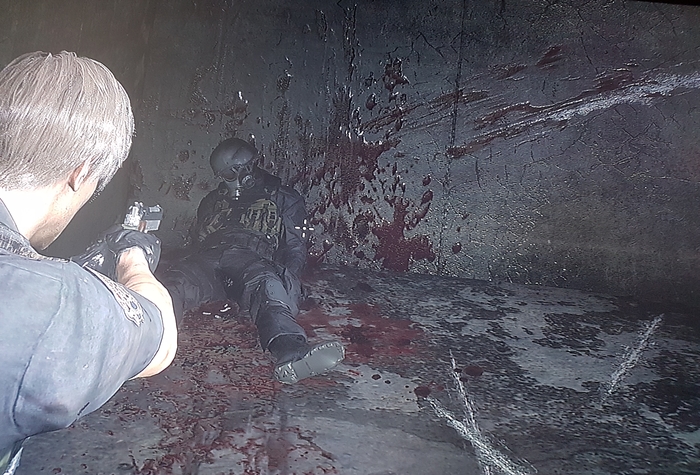 В оригинале была кат сцена, где доктора Биркина по неосторожности изрешетили, после чего он вколол себе вирус, мутировал в неведомую хрень, догнал спецназовцев и порешал их. В Ремейке кат сцен не было, но, гуляя по канализации, можно заметить точно таких же бравых парней без пульса, рядом на стенах глубокие царапины. Без сомнений, это результаты трудов Биркина.