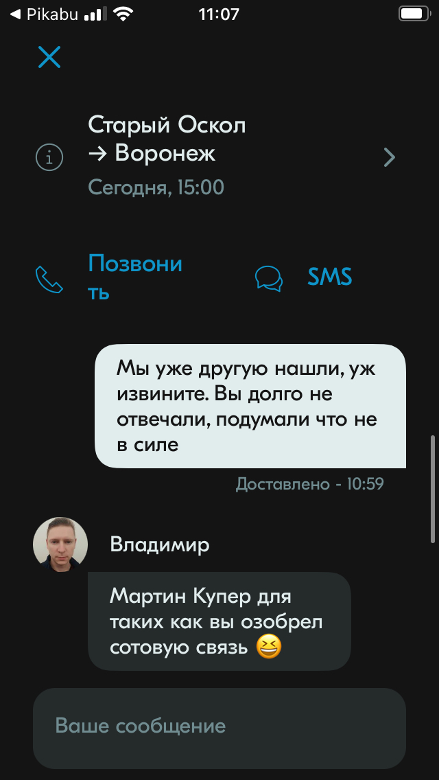 Дальше паника, ужас, иногда обвинение меня в том, что я таксист, посредник и вообще негодяй в 4 колене.