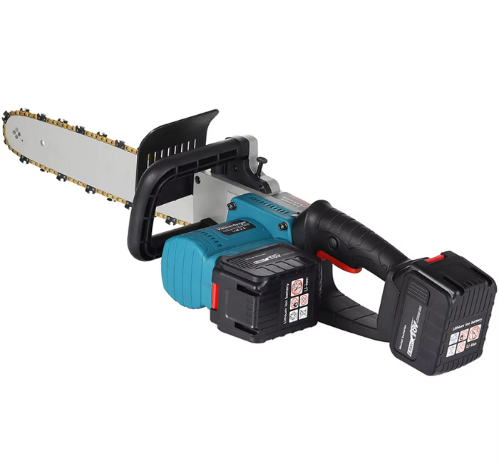 Начинаем нашу подборку с цепной пилы, которая может легко конкурировать с бензиновыми аналогами, но при этом почти не создает шума. Этот инструмент станет идеальным выбором для домашнего использования и сможет справиться с любыми задачами! Пила работает от двух аккумуляторов с общим напряжением 36В (совместима с АКБ Макита 18В) и обладает рабочей зоной в 40 см. В ней предусмотрена система смазки и плавная регулировка оборотов. Чтобы начать работу, достаточно зарядить аккумуляторы, установить цепь и добавить масло (необходимо приобрести отдельно — подойдет любой продукт для смазки цепи).