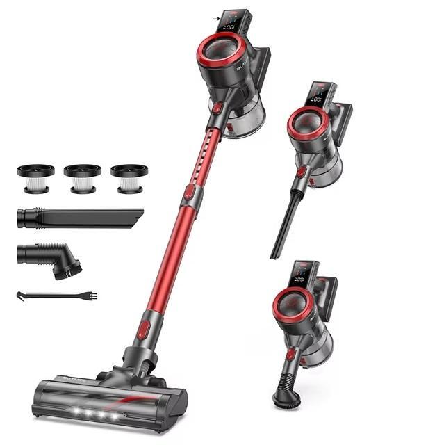 Redroad 17 отличается богатой комплектацией в виде различных щеток и насадок для разных типов уборки. Также следует выделить максимальную силу всасывания, которая равна 26500 Па, при этом мощность всасывания достигает 155AW, что является хорошим показателем для беспроводных пылесосов.