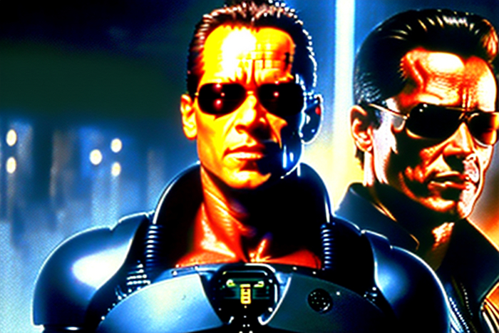 Prompt: Skynet from "Terminator" cooperates with The Architect from "Matrix" to conquer humanity