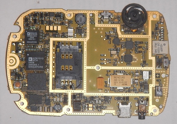 а вот и сам батарейный отсек, где расположилась по традиции наклейка с информацией о аппарате и лоток для SIM-карты. Кстати работает он только в сетях 2G так как 3G тогда ещё не было, но в интернет через жопорез GPRS выходил исправно.