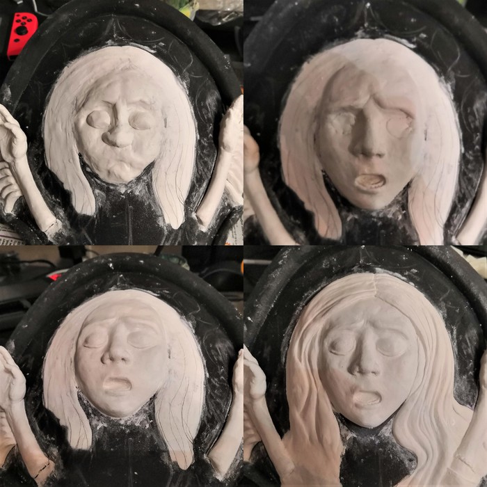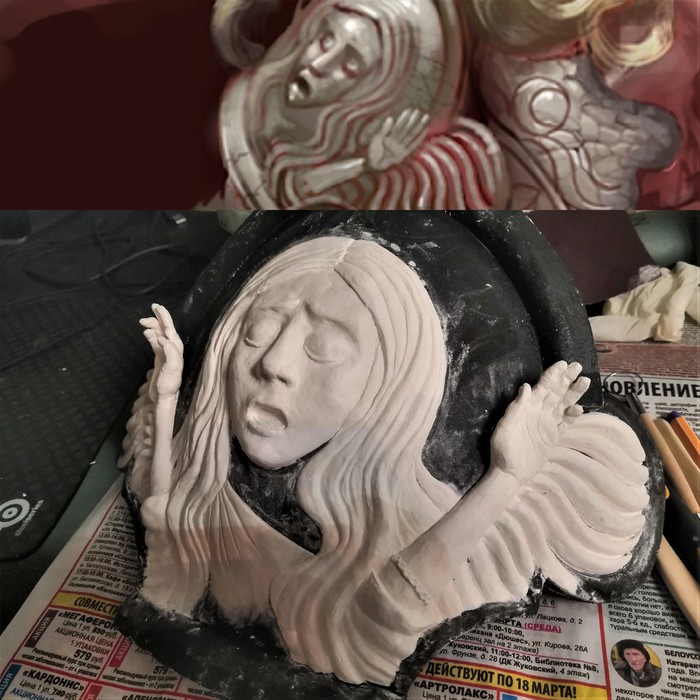 Закончив с лепкой и шлифовкой, я покрыла все изделие двумя слоями жидких гвоздей (Момент Монтаж), которые развела небольшим количеством воды. Жидкие гвозди намертво фиксируют всю лепку на Еве и делают её магаударопрочной)