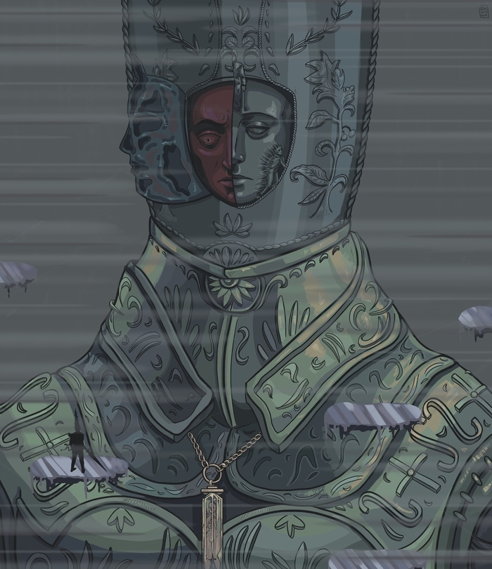Ох, давно сижу на Пикабу, но опубликовать пост решилась только сейчас :) Я рисую на графическом планшете несколько лет. Но фан-артами занялась только недавно. Недавно, пока проходила компьютерную, весьма атмосферную игру "Blasphemous", была настолько впечатлена дизайном боссов в ней, что захотелось нарисовать их! Для меня это первый опыт в области рисования фан-артов :)