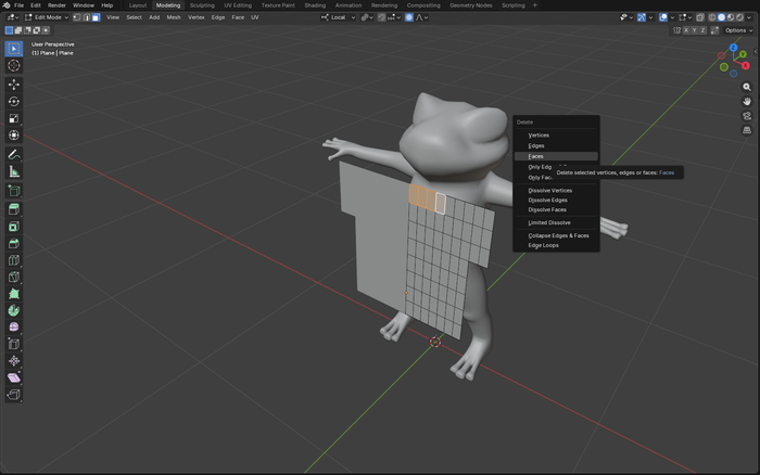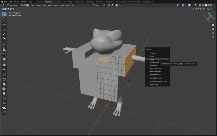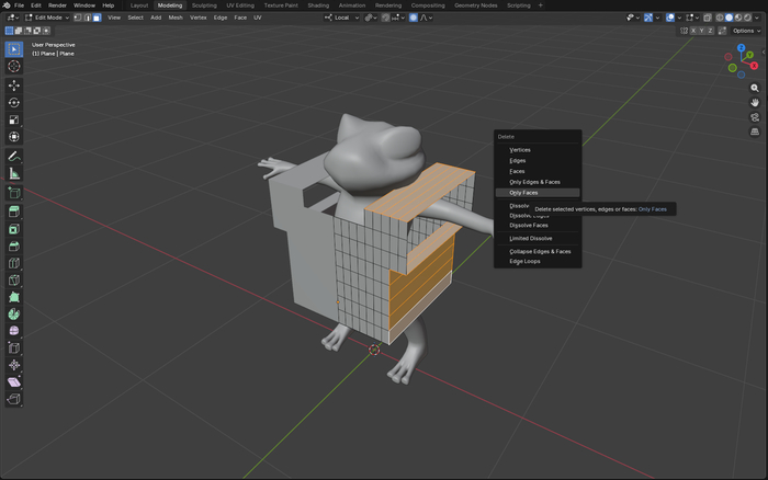 Затем удаляю полигоны для выреза спереди.