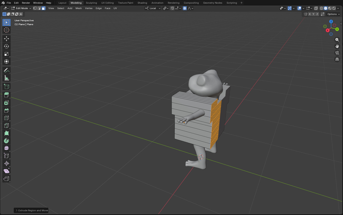 Выделяю все полигоны и вытягиваю (E).