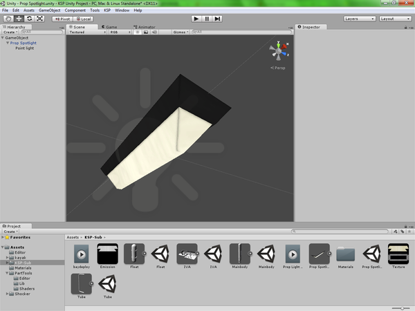 Вроде, самое необходимое для теста подводной лодки готово. Надо подготовить все это к экспорту. Поворачиваем модель в соответствие с требованиями Unity. Так же, должным образом, поворачиваем и настраиваем не только главную модель, но также IVA, поплавок, и арматурину. Теперь все этого экспортируем в fbx формат и скармливаем Unity, подавись он зараза.