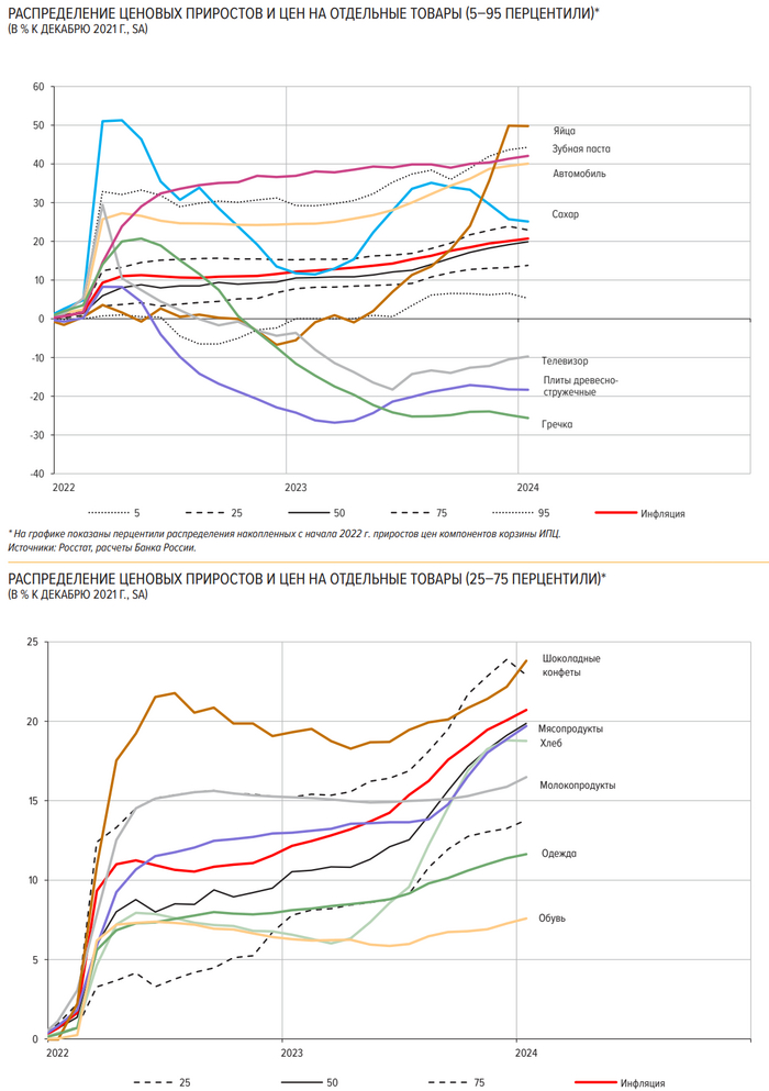 Пять товаров с наибольшими и наименьшими приростами цен и инфляция
