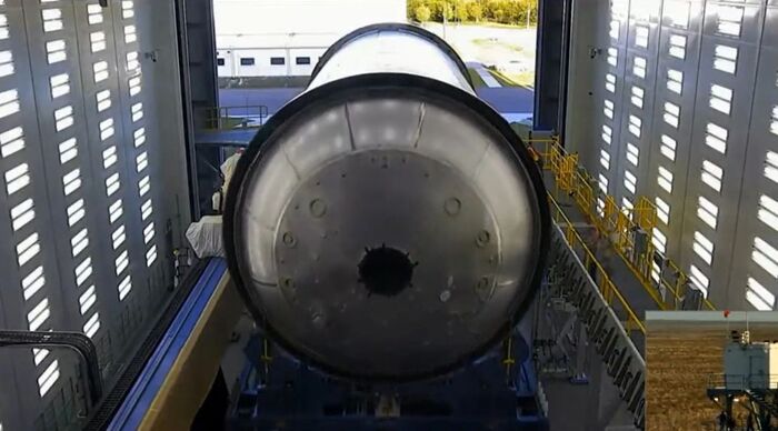 Прототип опоры и бака ракеты New Glenn засветился в одном из роликов Blue Origin, показанных во время прямой трансляции запуска NS-21.