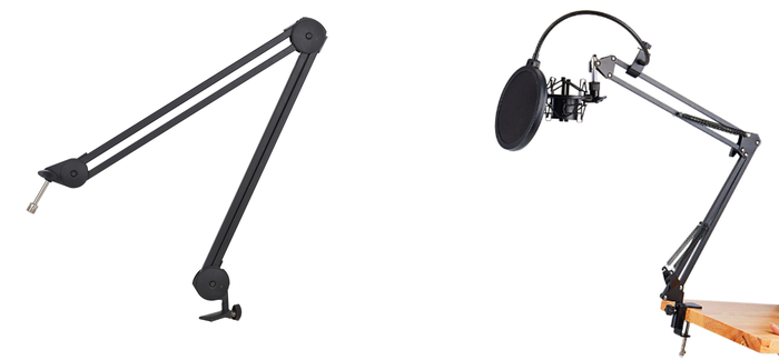 Но обычно такую проблему решают другим путем, докупая пантограф - стойку, которая прикручивается к столу и позволяет повернуть микрофон на 90 градусов. Это открывает нормальный доступ к клавиатуре и не закрывает монитор.