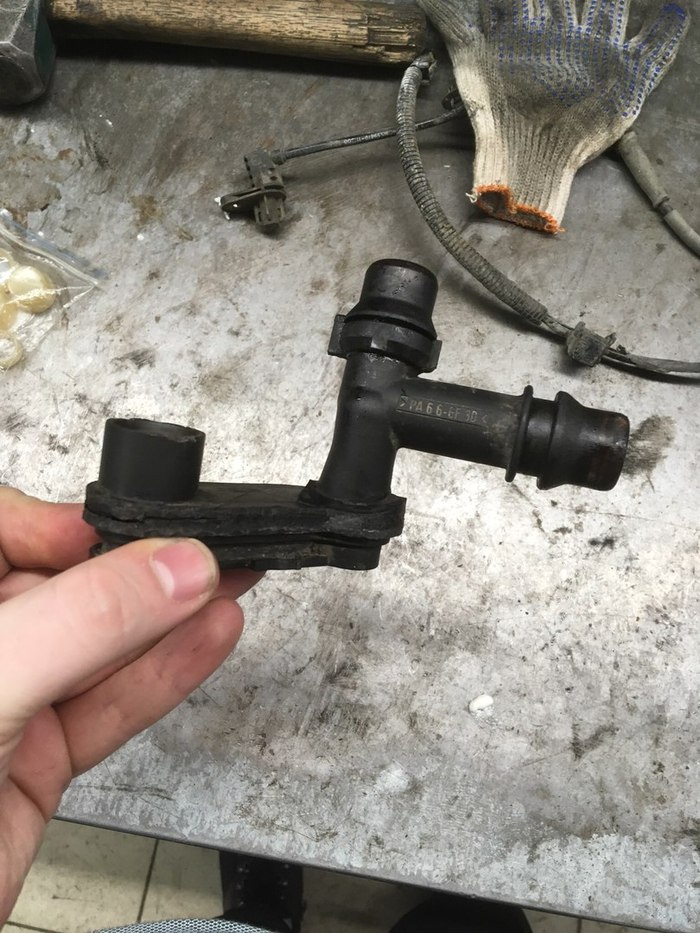В конечном счете, разобрали почти всю систему охлаждения, нашли этот штуцер, поискали, пошуршали, в Нижнем Тагиле в наличии НЕТ, на разборках бмв там не жалуют, а в местных супер спец магазинах бмв всё под заказ и ждать неделю, ам... спасибо, не надо.