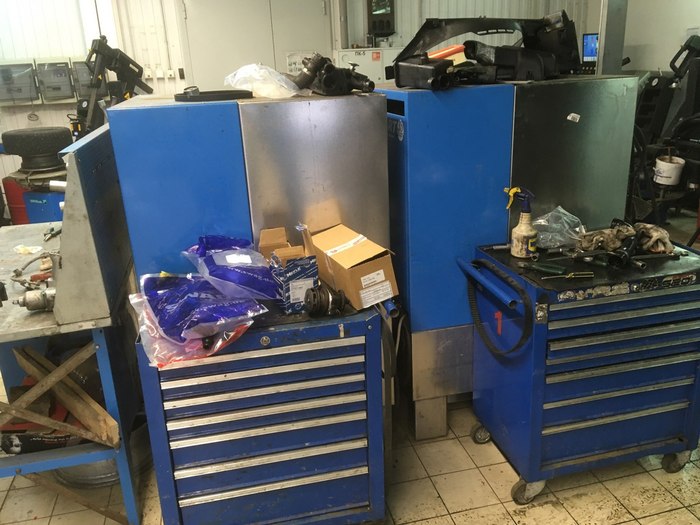 К слову, в Екатеринбурге нашёл гараж у знакомых, правда нет ямы, что довольно обидно, если придётся промывать систему охлаждения. Зато можно будет покопаться под капотом и по кузову, понемногу устранять косячки.
