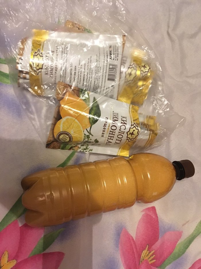 гуглю значит я как это делается... и пожалуйста... говорят лимонная кислота нехило так помогает... Иду и ищу её самую. Нашёл пакеты по 50гр и пересыпал всё в 1л бутылку.
