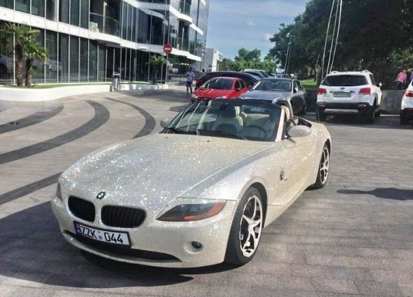 Интересно, что такой же родстер два года назад заметили в соседней Молдове. Тогда СМИ окрестили его «BMW Swarovski». 27-летней владелец машины — Виктор Данила из Кишинева — рассказал, что обклеил авто самостоятельно, на что у него ушло полгода и 250 тысяч камней. Кристаллами отделаны даже диски.