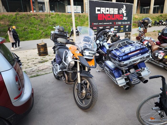 О кофрах хочется поговорить отдельно. В моём случае это были варио кофры, все три. В сложенном виде задние кофры дают ширину 82 см, в разложенном – 94. По рулю при этом – 95. И это великолепно, потому что типичная ситуация для турынд это иметь жопу шире морды, типа ты же в путешествие едешь, зачем тебе куда-то пролезать. Я регулярно брал кофры в однодневные поездки и каждый раз радовался. Нет боязни не пролезть жопой, влезает достаточно, даже в ДТП у меня сломался крепёж, но не сам кофр. Достойно.