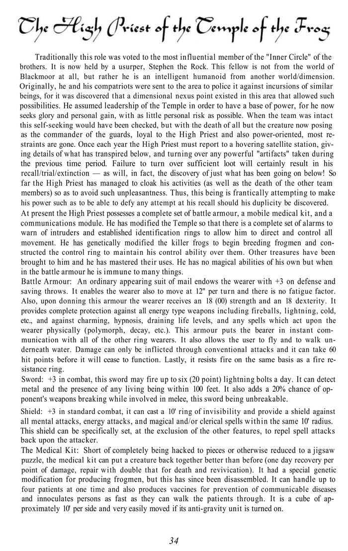 Дополнение. Blackmoor. (1979). Верховный Жрец Храма Лягушки. Описание Храма часть 1