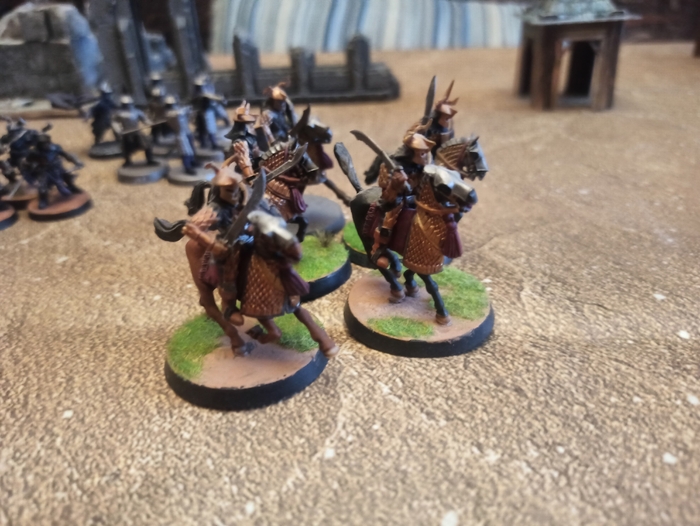 Минас-Тирит выставил большое число следопытов, несколько бронированных воинов Гондора и одного всадника с пешим командиром.