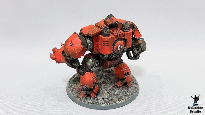 Проливка Berserker Bloodshade выступает в качестве подложки и обрамления, техническая краска Blood For The Blood God наносится штрихами и каплями. Как и в случае с лаком, можно позволить себе немного исказить рельеф, накапав блямб