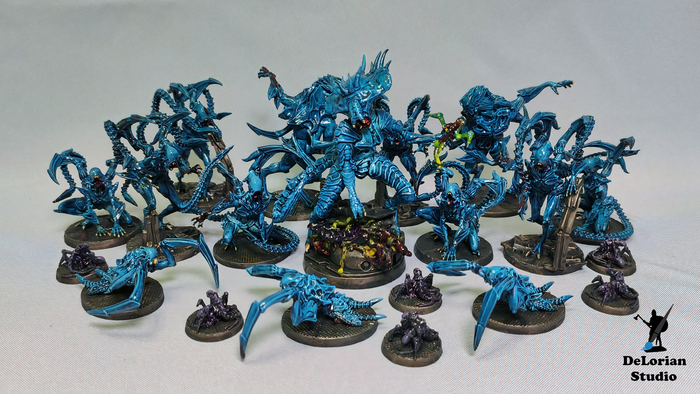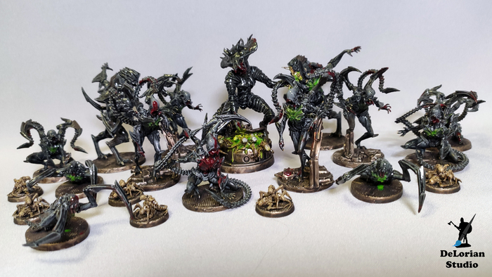 От тонов красок для драйбраша будет зависеть настроение чудовищ - коричневые добавят грязную мрачность, голубыми можно увести в иссиня-чёрный, а можно сильно осветлить. Зелёный подчеркнёт инопланетность. Есть варианты с фиолетовым перламутром и множество других