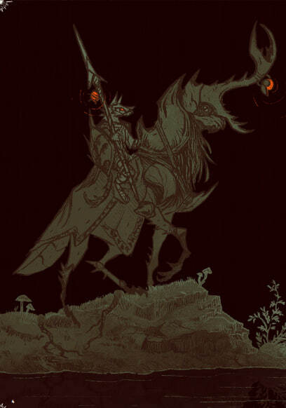 В финале - лёгкий драйбраш серебряным лейером. Чем светлее лейер, тем менее тревожным будет финальный образ, и наоборот. Ржавчина - по вкусу. Наносится драйбрашем с помощью рыжей Сухой краски Ryza Rust