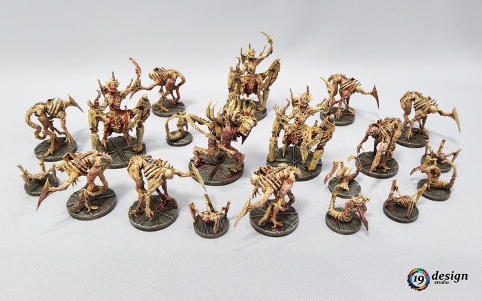 Карноморфы состоят из переплетений костей и мяса. Хорошей идей будет покрасить модели сначала в костяной цвет, а мясо нарастить позже