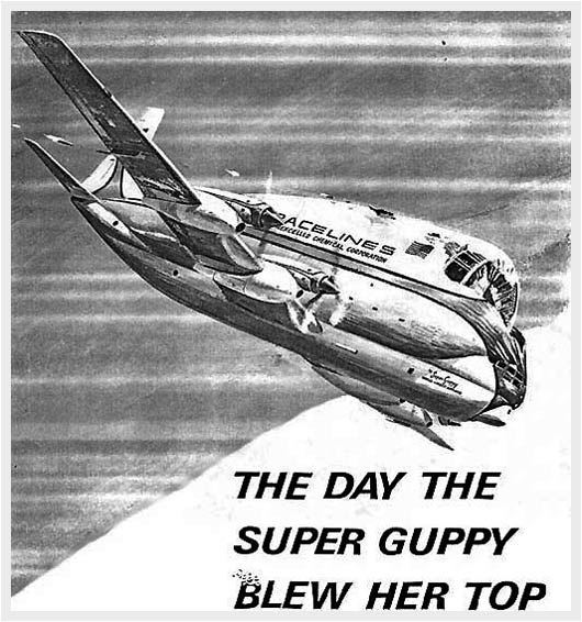 Как вы знаете, Super Guppy создавался Aero Spacelines на основе Boeing C-97 для перевозки грузов NASA. Во время выполнения скоростного пикирования в рамках сертификации самолёта, ему буквально сорвало крышу. Пилоты почувствовали взрыв в грузовом отсеке (а один из них даже получил дверью, слетевшей с петель, по лодыжке).