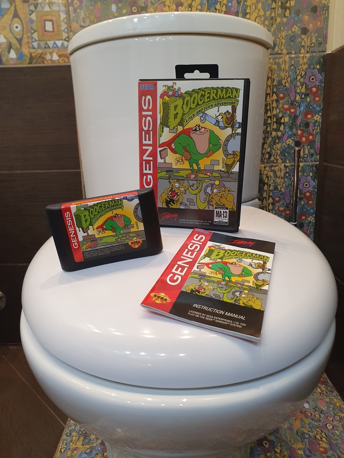 Господи, во что я играю?! – мой внутренний критик, 1995 года))Но физика пердежа была революционной для своего времени ☝😁 Boogerman: A Pick and Flick Adventure в коллекцию плюс один картридж на Sega Genesis с мануалом! Пожалуй Маме не буду показывать 😉
