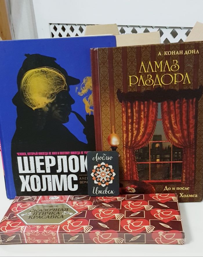 Я указывала, что являюсь поклонницей Артура Конан Дойла и Шерлока Холмса в частности. Галина угадала с книгами на 150%! Конфеты глупо хихикая утащил муж, магнитик занял почетное место на холодильнике, а Яндексу досталась коробка. Спасибо большое Галина, за то, что Вы не поленились отправить посылку, да ещё и в другую страну! И большое спасибо организаторам Книговорота за задумку и работу!