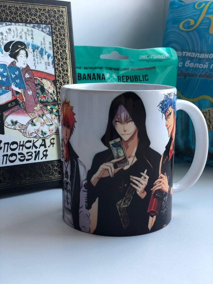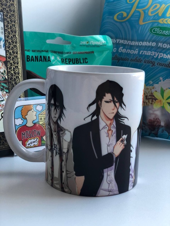 А в ней шикарная книга японской поэзии, кружка с крутыми парнями, милейший магнитик и нямные конфетки)