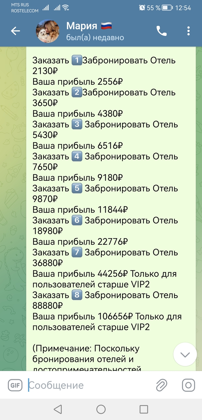 В ватсап приходит текст: "Здравствуйте! Нам нужен кто-то, чтобы оценить бронирование отелей. Платим 2000₽ ~8000₽. Наша работа очень проста, нам нужно только оценить или лайкнуть отель Booking. Если вы хотите присоединиться к нам, детали WhatsApp: (+номер телефона) Ответить "1" нажмите на визитку, чтобы добавить WhatsApp (Вход запрещен лицам моложе 25 лет)"