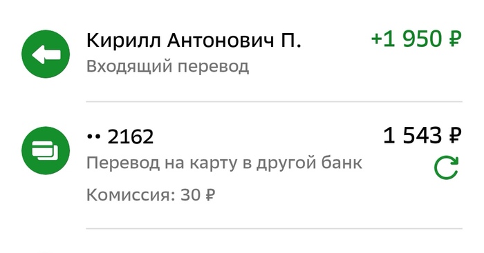 Далее получаем обратно на карту наши денежки с комиссией на карту.