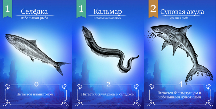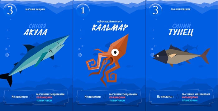 Принцип Атлантики тогда был очень простой: играешь карту, ешь того, кто на столе (желательно, у других игроков), получаешь столько победных очков, сколько написано на карте. Рандомно, небалансно, весело! Раняя версия игры вдохновлялась Кулинариумом и Зельеварением, а отголоски её сейчас есть в детском режиме Селёдки.