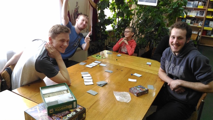 В эту библиотеку хаживал некто Андрей. Играл он много и с удовольствием, а ещё были у него свои игры. Нет-нет да и принесёт Андрей новый прототип, и вот уже сидят, играют в него люди добрые. Одной из самых интересных для публики была игра "Атлантика".