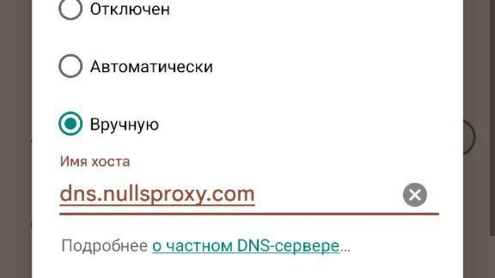 На Android все делается через параметры подключения. В поиске настроек найдите пункт «Персональный DNS-сервер» или «Частный DNS-сервер» и пропишите там адрес dns.nullsproxy.com. После сохранения изменений и успешного подключения попробуйте снова запустить приложение.