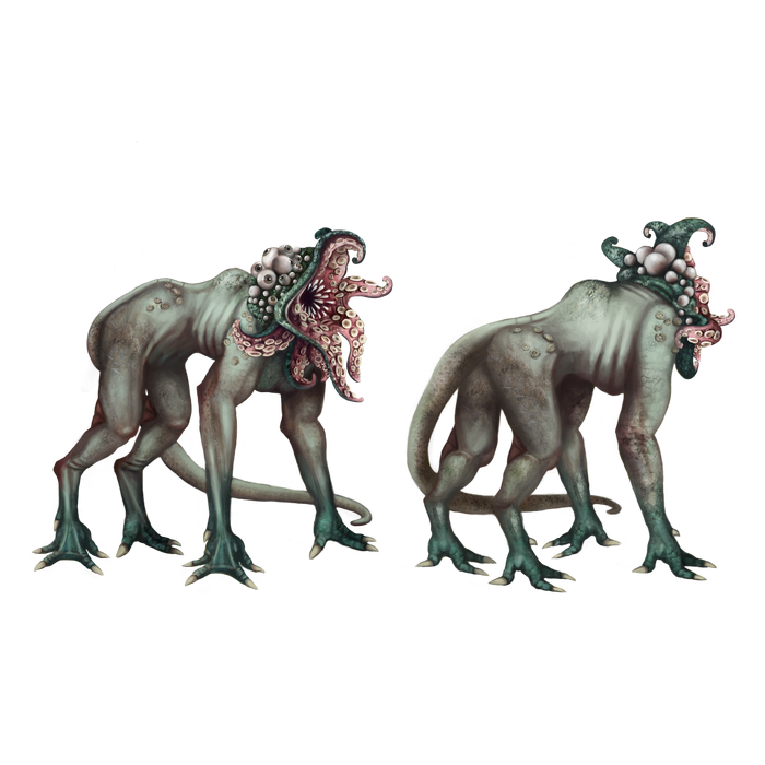 Если эта янтарка ещё никем не заражена, то первым будет поражён левый глазик и соответственно вся левая рожка. Тянет их налево, короче. Впрочем, если левый уже занят, то лишённому права выбора паразиту останется только занять свободный правый.