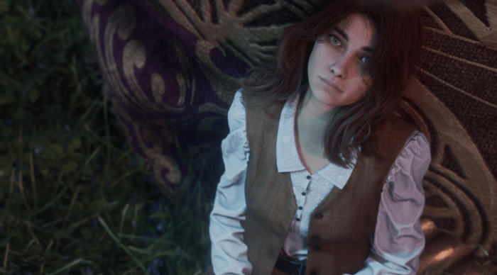Лицо у Лаумы с высокими скулами и мягким овалом. Кожа светлая, почти фарфоровая, но не мертвенно‑бледная в ней угадывается здоровый, свежий оттенок, как у человека, который много времени проводит на горном воздухе.