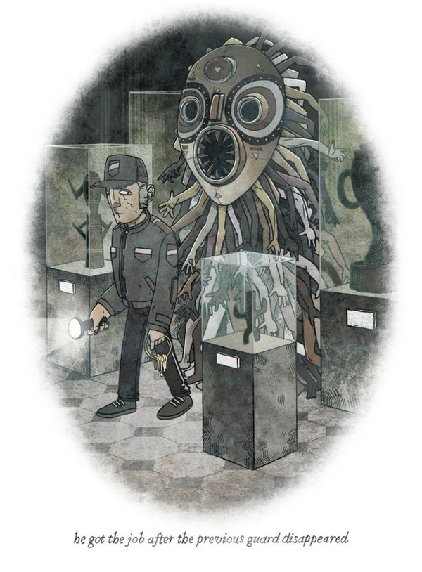 Художник Brian Coldrick некоторое время назад создал проект Behind you. Раз в неделю Брайан публикует одну картинку или gif-анимацию, основанную на городском фольклоре, сказках, мифах или стереотипных сюжетах жанра хоррор.