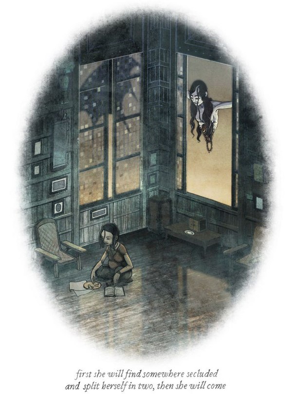 сначала, что она найдет уединенное место и разделится на две части, затем она придёт