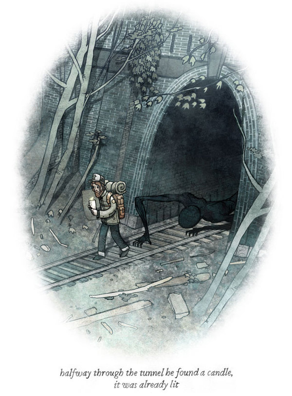 на полпути через тоннель он нашёл свечу, она была уже зажжена