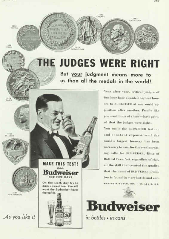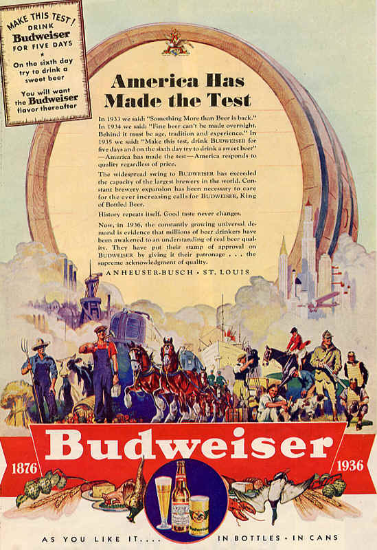 Эволюция банок Budweiser с 1936 по 1976⁠⁠