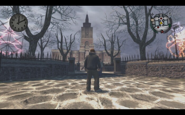 Bully — игра шестого поколения консолей, и сегодня она, конечно, выглядит уже не лучшим образом. Да, в своё время картинка была достойной: персонажи отличались лицами, а мир выглядел живо, но технические ограничения тех лет дают о себе знать. Иногда встречаются «пропадающие» текстуры и внезапные подгрузки объектов — особенно заметные на современном железе.