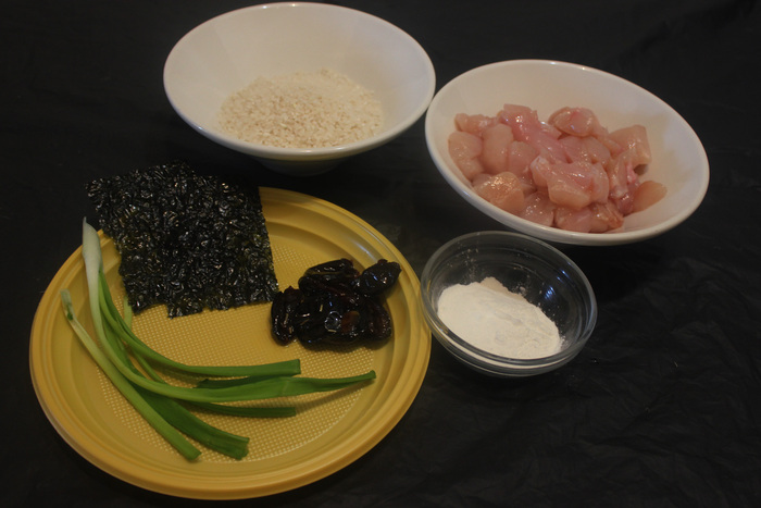 5) В чашку выкладываем сваренный рис, а затем кусочки курицы. Верхушку украсит слива, зеленый лук и нори. Заливаем тарелку горячим бульоном и наслаждаемся!