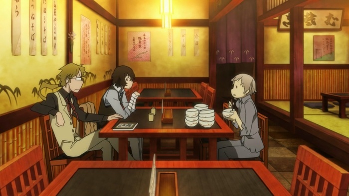 Занимательный факт: Ацуши с первых секунд говорит о рисовой похлебке, ведь его самого выгоняют из сиротского приюта, непременно напоминая парню что он всем надоел, никто его не любит и нигде его не ждут. Отядзукэ не зря является любимым блюдом Ацуши, ведь оно так характеризует ситуацию в которой он оказался. Дело в том, что в старину это блюдо подавали гостям с намеком на то, что те начинают злоупотреблять гостеприимством хозяев и им пора уходить. Символично, не правда ли?