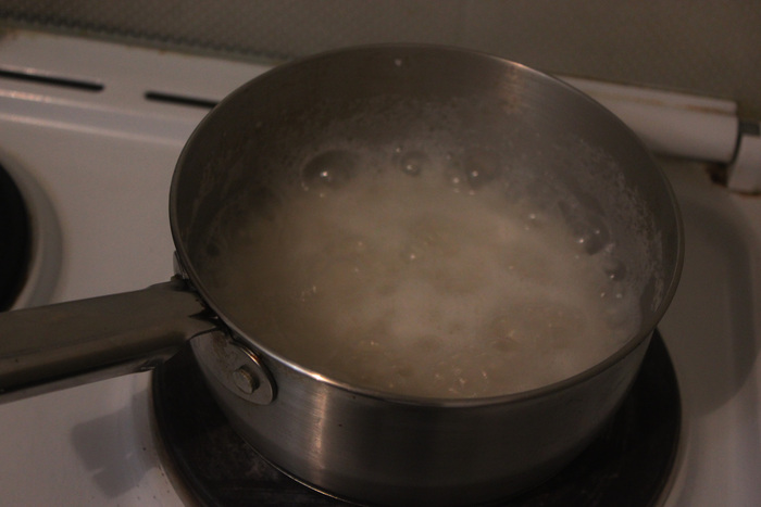 1) Ставим вариться рис. На соседней плите ставим разогреваться куриный бульон. Я использовал уже готовый, чего и вам советую. Если же бульона у вас не нашлось и возиться не хочется, то дело нехитрое - добавьте любимый многими куриный кубик в воду. А можете просто вскипятить воду, только посолите хотя бы.