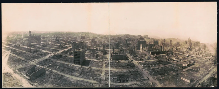 Джордж Р. Лоуренс, фото Сан-Франциско в руинах после землетрясения с дирижабля, 1906 год.