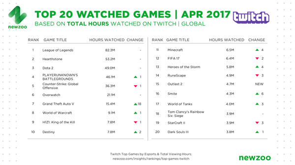 Данные за апрель опубликовал аналитический портал Newzoo.