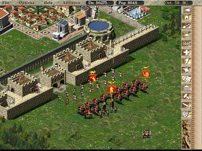 Я не являюсь вдохновителем серии Цезаря - это Дэвид Лестер и Саймон Брэдбери. Но я был с ними в самом начале и в некотором роде зародыш идеи состоял в том, чтобы объединить игру Civilization с SimCity! SimCity была забавной, но в игре не было никакого конца. В то же время это было объявлено как «игрушка», а не игра. Идея с Цезарем заключалась в том, чтобы создать геймплей о строительстве города (а не империи), но в этом есть смысл. То есть, в отличие от SimCity, вы можете проиграть или выиграть. И была придумана боевая система.