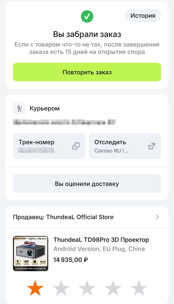 Посмотрел личный кабинет, проектор действительно доставлен, вот только вопрос кому?